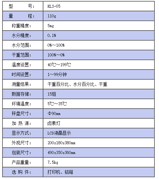 該水分儀廣泛使用于需要快速測定水分的行業,如糧食、飼料、種子,脫水蔬菜、煙草,化工,茶葉,食品、肉類、農林、造紙、橡膠、塑膠、紡織等行業中原材料、中間體、成品樣品中水分含量的測試及數據打印。