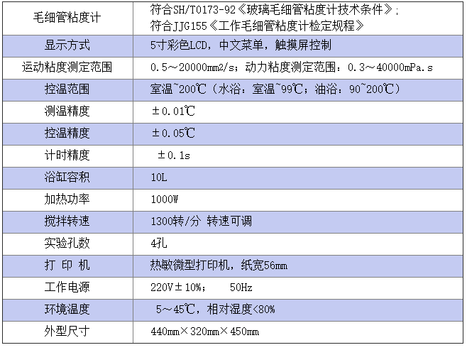 儀器符合GB/T265、GB1660、GB1841的標準,用于測定液體石油產品的運動粘度和動力粘度。該儀器采用先進的單片機,彩色中文液晶顯示,觸摸屏控制,運用模糊控溫方式,高精度的進口感溫元件,控溫準確、精度高,自動計時、自動計算運動粘度和動力粘度值、自動打印并存儲測定結果。儀器采用了10L玻璃浴缸,體積小,液體介質用量少,外形結構新穎,是一款先進的粘度自動測定儀。
